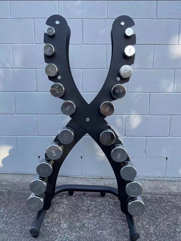NZ POWER CHROME DUMBBELL SET WITH STAND1/2/3/4/5/6/7/8/9/10kg in pairs Listing comes with 10 pairs of dumbbells and the stand.